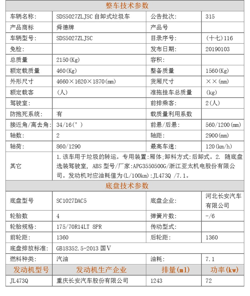 | 長安 4方密封(自卸)式垃圾車 售后服務(wù)說明 | |
