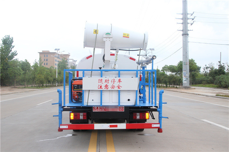 噴霧降塵車(chē)工作效率約為普通灑水車(chē)的30倍,一臺(tái)噴霧降塵車(chē)的工作直徑可覆蓋4個(gè)標(biāo)準(zhǔn)足球場(chǎng)。水箱中的水經(jīng)過(guò)霧化后,由高壓風(fēng)機(jī)噴出水霧顆粒極為細(xì)小,達(dá)到了微米級(jí),其吸附力也增加了3倍,耗水量卻降低了70%,遭遇霧霾天氣、空氣質(zhì)量PM2.5嚴(yán)重超標(biāo)時(shí),進(jìn)行液霧降塵、分解淡化空氣中的顆粒濃度、將飄浮在空氣中的污染顆粒物、塵埃等迅速逼降地面,達(dá)到清潔凈化空氣的效果。