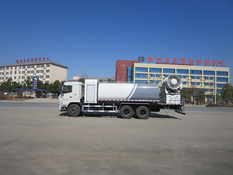 專用裝置為抑塵霧炮,用于城市抑塵.整車長(zhǎng)/軸距/后懸對(duì)應(yīng)關(guān)系為(mm):10630/4350+1350/3490;10630/4750+1350/3090;11880/5400+1350/3690;11880/5700+1350/3390;11880/5900+1350/3190;防護(hù)材料:Q235A碳鋼,連接方式:左右側(cè)面采用焊接連接,后下部防護(hù)采用螺栓連接,后部防護(hù)斷面尺寸(mm):120×50,后部防護(hù)離地高度(mm):500.ABS型號(hào)/生成廠家:3631010-C2000/東科克諾爾商用車制動(dòng)系統(tǒng)(十堰)有限公司;選裝霧炮型號(hào):WF-60/WF-80/WF-100所對(duì)應(yīng)的整備質(zhì)量分別為:12300kg/13250kg/14000kg。隨底盤選裝駕駛室。選裝外形圖片。