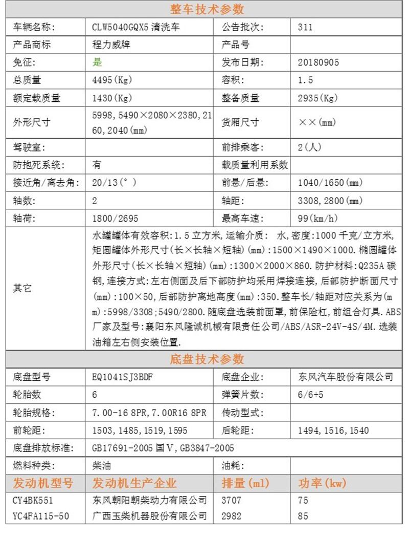 東風小多利卡藍牌 3方高壓清洗車 售后服務(wù)說明