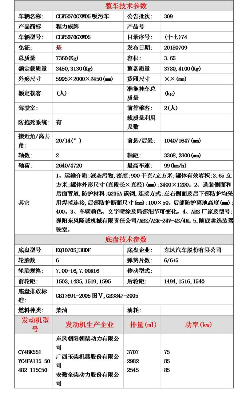 東風小多利卡吸污車罐體形狀為圓柱形,采用武鋼6mm厚優(yōu)質碳鋼鋼板,罐體前部帶吸污窗,洗手裝置,舉升裝置,吸污管5米一根,罐體多種顏色選擇,其余按廠內標準配置制作。隨車配置大功率真空吸污泵和優(yōu)質液壓系統(tǒng),罐體封頭一次壓鑄成型、罐體可后開、雙頂自卸。罐內污物可通過后蓋直接傾倒,具有真空度高(比吸糞車的吸力更大)、噸位大、效率高、用途更廣泛的特點。(垂直吸程:≥8 m,工作壓力:8500Pa,理論抽速:80L/S,軸功功率:≤8kw,進排氣口徑:50mm,抽滿罐時間:<5 min,排滿罐時間:<4min。吸污車采用大功率真空泵,一次壓鑄成型的封頭-,加厚的抗壓罐體,雙頂液壓系統(tǒng),是比吸糞車功能更強大的車型。