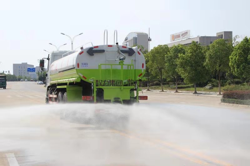 由發(fā)動機(jī)帶動變速箱,變速箱上安裝的取力器帶動灑水泵,灑水泵產(chǎn)生主要動力,將罐體內(nèi)部的液體通過管網(wǎng)噴灑出去。自吸高度:≤7m,灑水寬度:≥20m,最大射程:≥28m;可調(diào)節(jié)成柱狀,射程≥28m;也可調(diào)節(jié)成霧狀,射程≥5m。